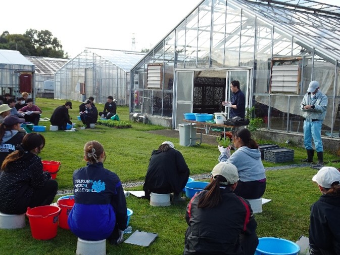 2025年10月23日、T-PIRC農場で生物資源生産科学実習Ⅱが行われました。A班は畑で作物の収穫、B班はハウスで鉢物管理を体験し、作物生産と園芸管理の両面から学びを深めました。